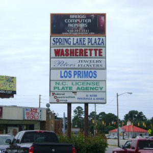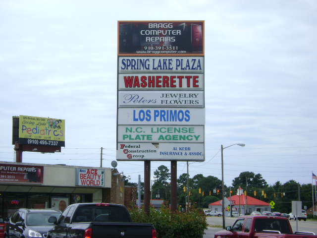 2,000 sq ft storefront for lease in busy Spring Lake Plaza; near intersection with Bragg Blvd/NC 87; great signage available at street; $ 2,000/mo modified gross.